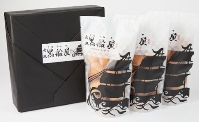 大阪黒船屋のベビーカステラは、昔ながらの味を守り続けます。優しい甘みとふわふわ食感の味わいをお楽しみください。 1袋に18個程度入っております。 箱が必要ない、ご家庭で試してみる場合は小1袋での販売もございます。 小・1袋入り¥1,400(箱なし) 中・2袋入り¥2,400(箱あり)小より1袋あたり¥200(2袋で400円)お得です。 大・3袋入り¥3,000(箱あり)小より1袋あたり¥400(3袋で1200円)お得です。 商品について 消費期限:製造日より8日間 原材料名:小麦粉(国内製造) 砂糖 鶏卵(国産) 醤油(大豆を含む) 膨張剤 香料 栄養成分表示100g当たり 熱 量:307㎉ たんぱく質:6.1g 脂 質:2.3g 炭水 化物:65.5g 食塩相当量:0.45g 本製品に含まれるアレルギー物質 小麦・大豆・卵 発送・問い合わせについてのご案内⚠️ 土日祝、毎週月曜日は対応出来かねますこと、ご了承ください。 また発送に関しましては、注文頂いたお時間や曜日にも異なりますが、基本的には注文頂いてから二日以内には作り作ったその日に発送しております またイベント出店をメインに活動させていただいている為、活動期間に入りますとネット販売を一時停止させていただくことがあります。 イベントや店舗の情報などは是非Instagramにてチェックをよろしくお願いします。id:kurofuneya228 大変ご不便をおかけいたしますが、ご理解いただけますようお願い申し上げます